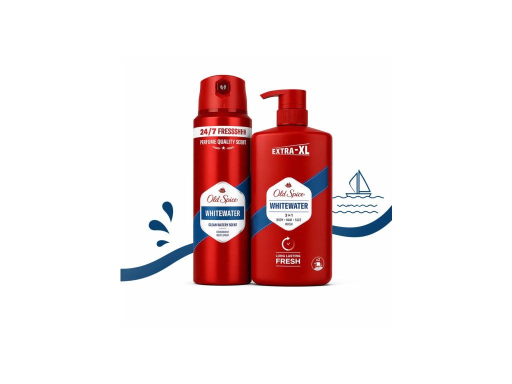 Gel za prhanje Old Spice Whitewater zagotavlja intenzivno osvežitev in temeljito čiščenje kože z vsakim prhanjem. Odlikuje ga značilen svež vonj, ki ga navdihujeta voda in morski vetrič, ki daje energijo in občutek čistoče ves dan. Zahvaljujoč penasti formuli učinkovito odstranjuje nečistoče, ne da bi pri tem po nepotrebnem izsušil kožo.