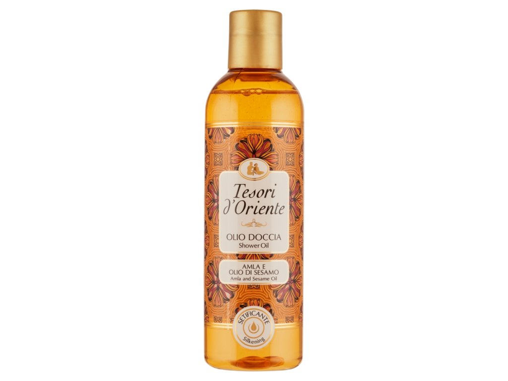 Dragocena formula olja za prhanje Tesori d'Oriente , ki vsebuje sezamovo in amla olje , med prhanjem koži prinaša opojno dišavo, nežno čisti, neguje in prispeva k svilnato gladki koži. Oljna struktura se ob stiku z vodo spremeni v bogato in svilnato peno, zaradi česar je prhanje blagodejna senzorična in sproščujoča izkušnja.