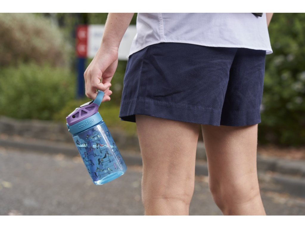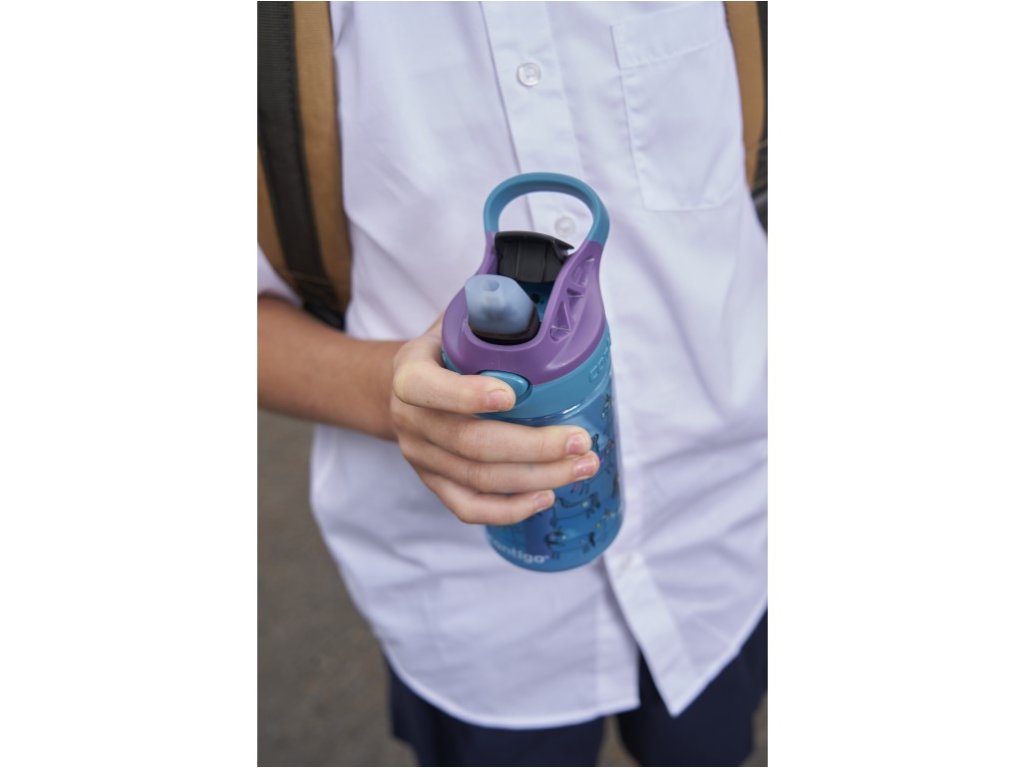 Otroška steklenička Contigo s tehnologijo AUTOSPOUT si je prislužila mesto v šolskih torbah po vsem svetu. Otroci radi pritisnejo gumb za odpiranje slamice, kar omogoča enostavno pitje z eno roko. Izliv je mogoče pospraviti pod pokrovček, kar ga ščiti pred umazanijo in ostanki. Pametno zasnovan izliv odpravlja vse kotičke in špranje, kjer bi se lahko nabirala umazanija, pokrovček pa je mogoče enostavno odstraniti za popolno čiščenje. Vsi deli so primerni za pomivanje v pomivalnem stroju na zgornji rešetki. Izdelana je iz polipropilenske plastike. Steklenička zaradi varnostnih razlogov ni primerna za vroče napitke. Izdelek ni odporen proti razlitju, ko je odprt, zato priporočamo, da ga nosite pokonci.Dodatni parametri