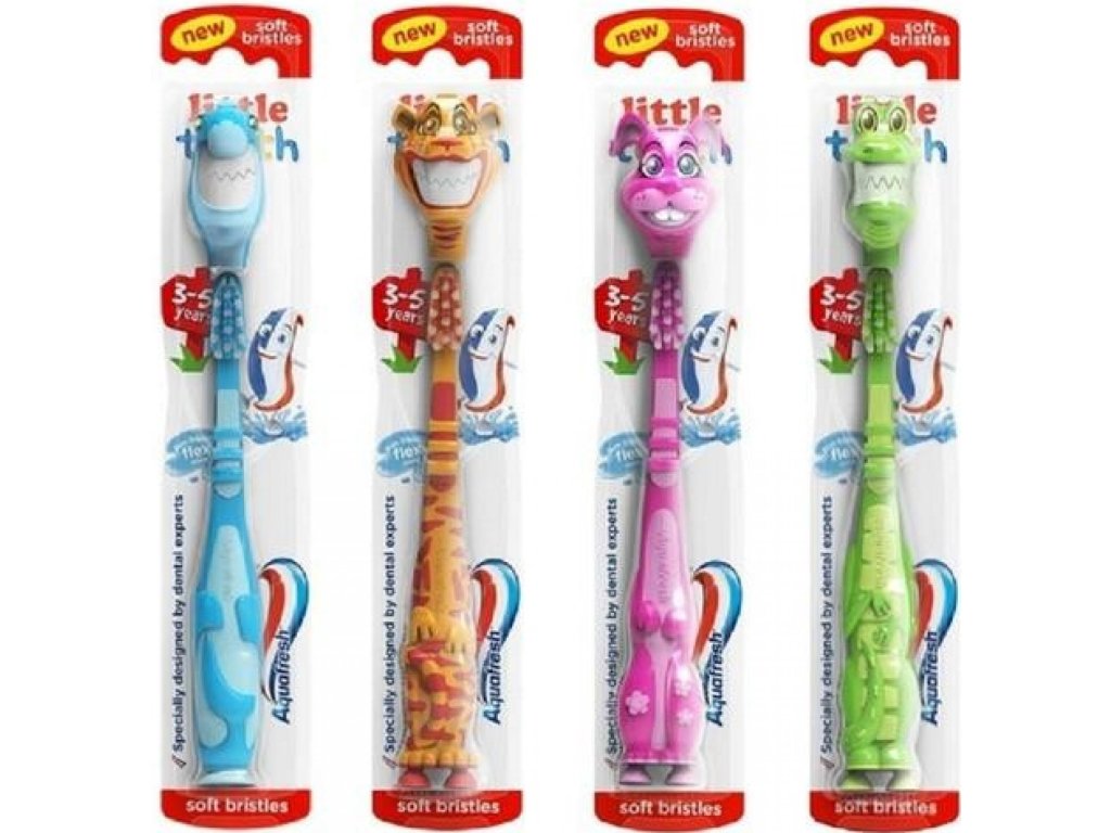 Zobna ščetka Aquafresh Little Teeth Soft je zobna ščetka za otroke z mehkimi ščetinami. Zobna ščetka ščiti mlečne zobe in preprečuje nastanek zobne gnilobe. Dostava je odvisna od trenutne ponudbe in ni mogoče dostaviti določenega motiva. Značilnosti otroške zobne ščetke Aquafresh Little Teeth Soft: Namenjena je otrokom, starim od 3 do 5 let. Ima mehke ščetine, ki odstranjujejo ostanke hrane in zobne obloge. Njen fleksibilen vrat ne pritiska na otroške dlesni. Te so tako zaščitene pred draženjem ali mehanskimi poškodbami. Priporočljivo je, da zobno ščetko zamenjate po treh mesecih. Uporaba zobne ščetke Aquafresh Little Teeth: Prekomerno/pretirano upogibanje vratu zobne ščetke lahko povzroči, da se zlomi. Otroci, mlajši od 6 let, naj si umivajo zobe pod nadzorom odrasle osebe. Ne dovolite otrokom, da žvečijo ščetine ali zobno ščetko. Pokrovčka ščetke ne dajajte v usta. Zobno ščetko je priporočljivo menjati vsake 3 mesece.