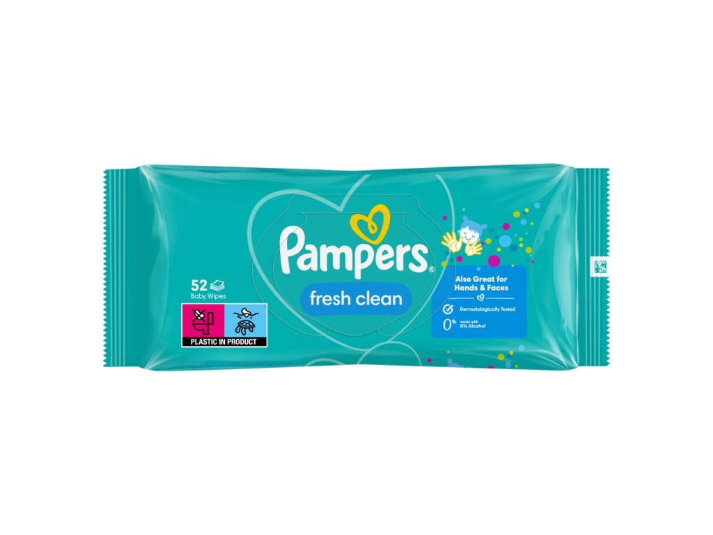 Privoščite svojemu dojenčku osvežilno čiščenje z robčki Pampers Baby Fresh Clean, zdaj s teksturo Soft Grip™. Dermatološko testirani in formulirani z losjonom iz čiste vode in kančkom aloe vere . Za zanesljivo in učinkovito vsakodnevno čiščenje poskusite robčke Pampers Baby Fresh Clean .