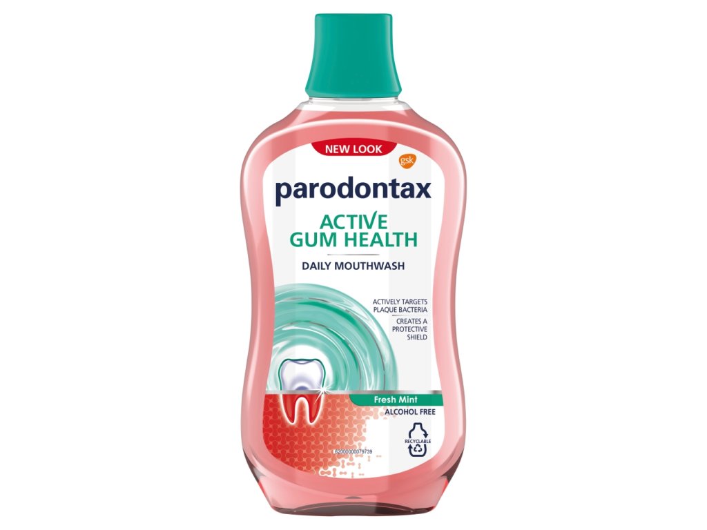 Ustna vodica Parodontax Daily Gum Care Extra Fresh pomaga odstraniti zobne obloge med zobmi in vzdolž linije dlesni. Zdrave dlesni so OSNOVNI temelj zdravih ust. Odstranjevanje zobnih oblog z linije dlesni in med zobmi pomaga preprečiti ponovitev težav z dlesnimi. Ustno vodico parodontax Daily Gum Care uporabljajte kot del svoje vsakodnevne ustne nege. Znanstveno je dokazano, da pomaga ohranjati bolj zdrave dlesni in zobe.