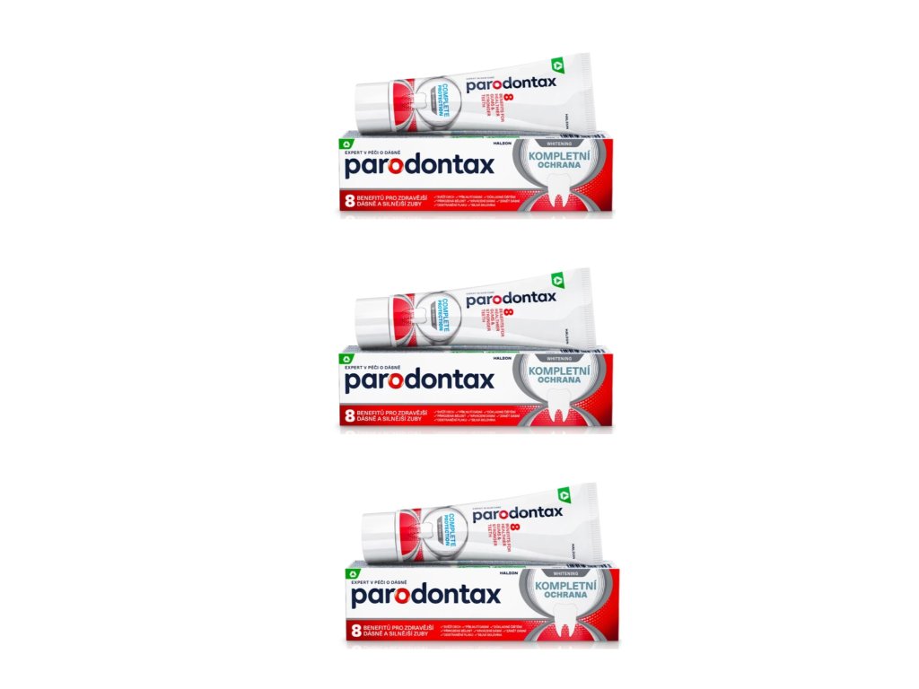 Zobna pasta Parodontax Complete Protection Whitening je zasnovana za vsakodnevno nego dlesni in zob. Posebna formula pomaga odstraniti zobne obloge vzdolž linije dlesni, podpira njihovo zdravje in hkrati nežno obnavlja naravno belino zob. Zahvaljujoč vsebnosti fluorida prispeva h krepitvi zobne sklenine in splošni zaščiti ustne votline.