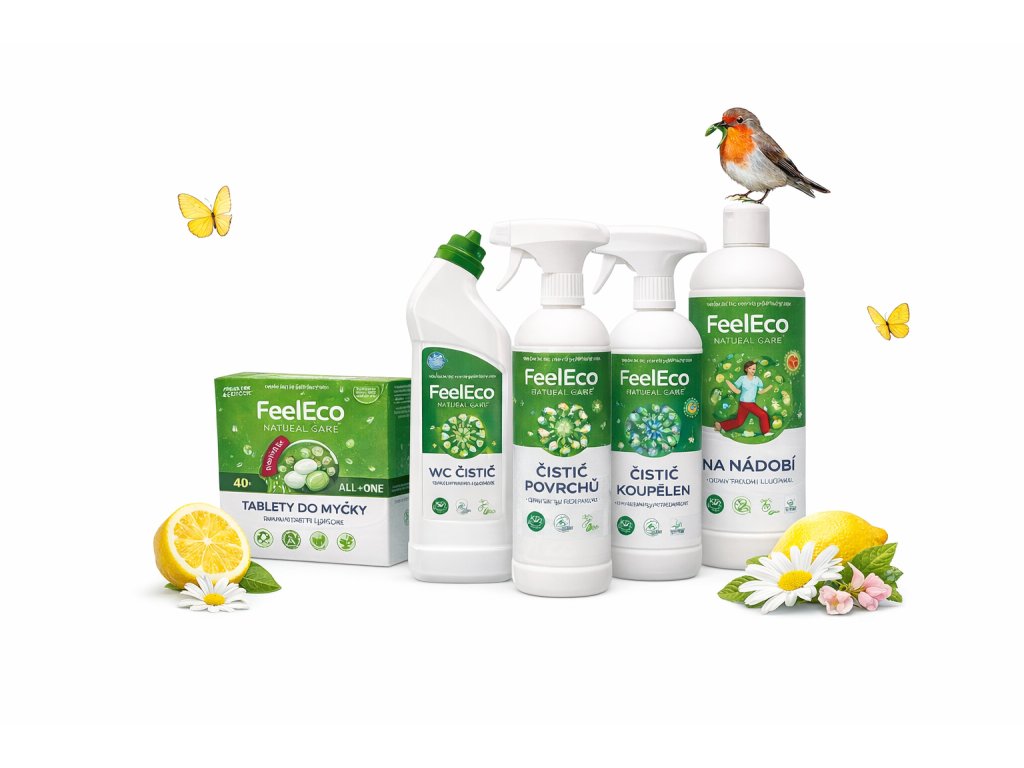 Praktični paket FeelEco vam nudi vse, kar potrebujete za redno čiščenje kuhinje, kopalnice in stranišča. Združuje več vrst čistil, tako da vam doma ni treba preklapljati med različnimi znamkami in izdelki – preprosto sežete po pravem izdelku in greste. Idealno za spomladansko čiščenje, za nov dom ali kot priročna zaloga.