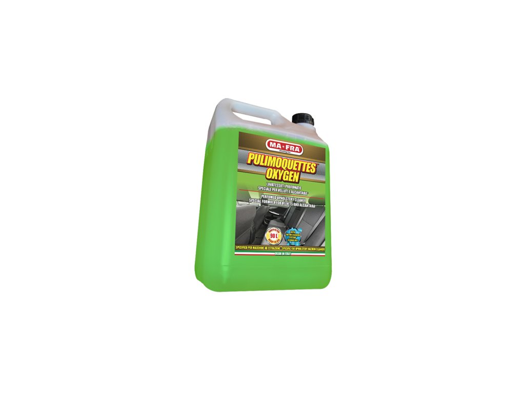 MA-FRA - PULIMOQUETTES OXYGEN čistilno sredstvo 4,5 l - Visoko koncentriran izdelek z zmanjšanim penjenjem čisti vse oblazinjeno pohištvo v notranjosti avtomobila.Dodatni parametri