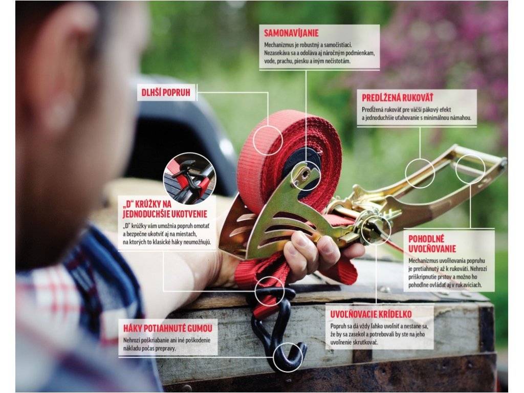 Sistem za pritrditev QUICKLOADER® z nosilnostjo do 1200 kg in dolžino 4,5 m (nastavljiva od 0,7 do 3,8 m) je zanesljiv pomočnik pri prevozu težjih tovorov. Zasnovan je za vsakodnevno uporabo v zahtevnih okoljih – idealen za voznike tovornjakov, obrtnike in zahtevnejše lastnike domov. Integriran mehanizem za navijanje deluje gladko in brez zatikanja – jermen se ne zapleta, je vedno pripravljen za takojšnjo uporabo in se ne boji prahu, vlage ali druge umazanije. Podaljšan ročaj omogoča učinkovito zategovanje z minimalnim naporom. Enostavno sprostitev zagotavlja praktično krilo, ki deluje brez težav tudi z delovnimi rokavicami ali v slabih svetlobnih pogojih. Robustni kavlji z gumijasto prevleko pomagajo zaščititi tovor pred poškodbami, univerzalni obročki "D" pa širijo možnosti pritrditve – cenili jih boste še posebej tam, kjer klasičnih kavljev ni mogoče uporabiti. Vsi kovinski deli so obdelani s peskano površino, kar poveča odpornost proti obrabi in koroziji – s tem zagotavlja dolgo življenjsko dobo tudi pri pogosti uporabi.Dodatni parametri