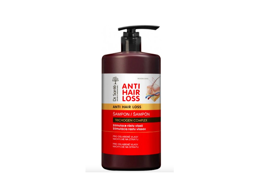 Šampon proti izpadanju las Dr. Santé krepi lasna vlakna in ščiti lase pred oslabitvijo. Aktivna formula vsebuje aminokisline, vitamine, minerale in beljakovine ter neguje vaše lase od korenin do konic. Beljakovine volčjega boba ščitijo lase pred mehanskimi in kemičnimi poškodbami las. Šampon nežno umiva lase in lasišče.Pakiranje: 1000 mlTehnologija: Izvleček perujske mace - krepi oprijem las, spodbuja proizvodnjo kolagena. Zmanjšuje izpadanje las. Beljakovine volčjega boba - dajejo lasem sijaj in vitalnost. Ščiti pred mehanskimi in kemičnimi poškodbami las.Lastnosti:- šampon proti izpadanju las- krepi lasna vlakna- spodbuja rast las- bogat z vitamini in minerali- nežno umiva lase in lasiščeNavodila za uporabo:1. Nanesite majhno količino na mokre lase. Spenite. Izperite.2. Nadaljujte z nego iz iste linije.