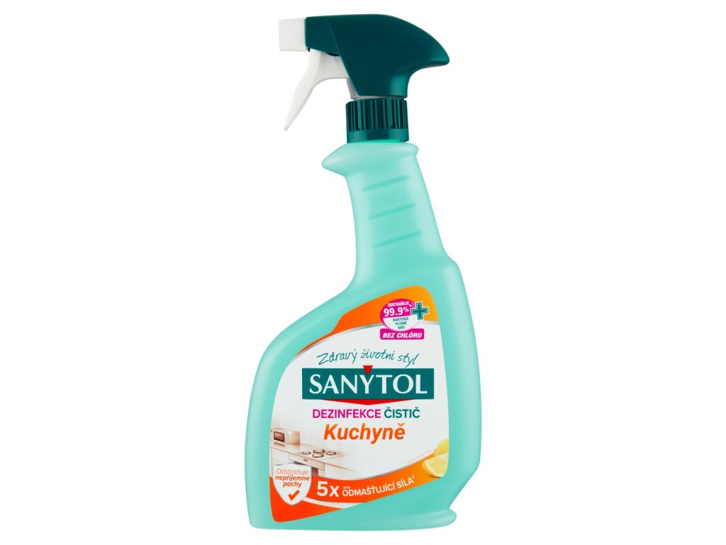 Sanytol za kuhinjo zagotavlja popolno higieno. Učinkovito odstranjuje maščobo in obloge v kuhinji. Zahvaljujoč trojnemu učinku proti bakterijam, virusom in glivicam odstrani 99,9 % mikroorganizmov. Globoko čisti in razkužuje ter je nežen do površin.