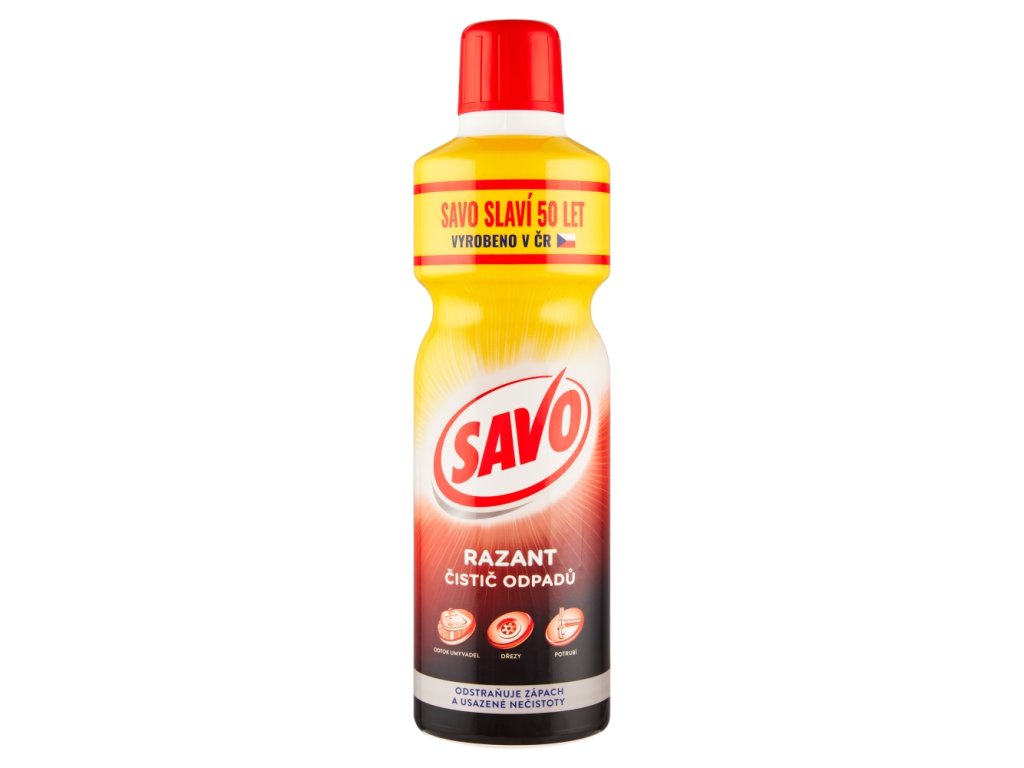 SAVO Razant je visoko učinkovito tekoče sredstvo v obliki gela z okrepljenim učinkom pri sproščanju zamašenih odtokov in odpravljanju neprijetnih vonjav.