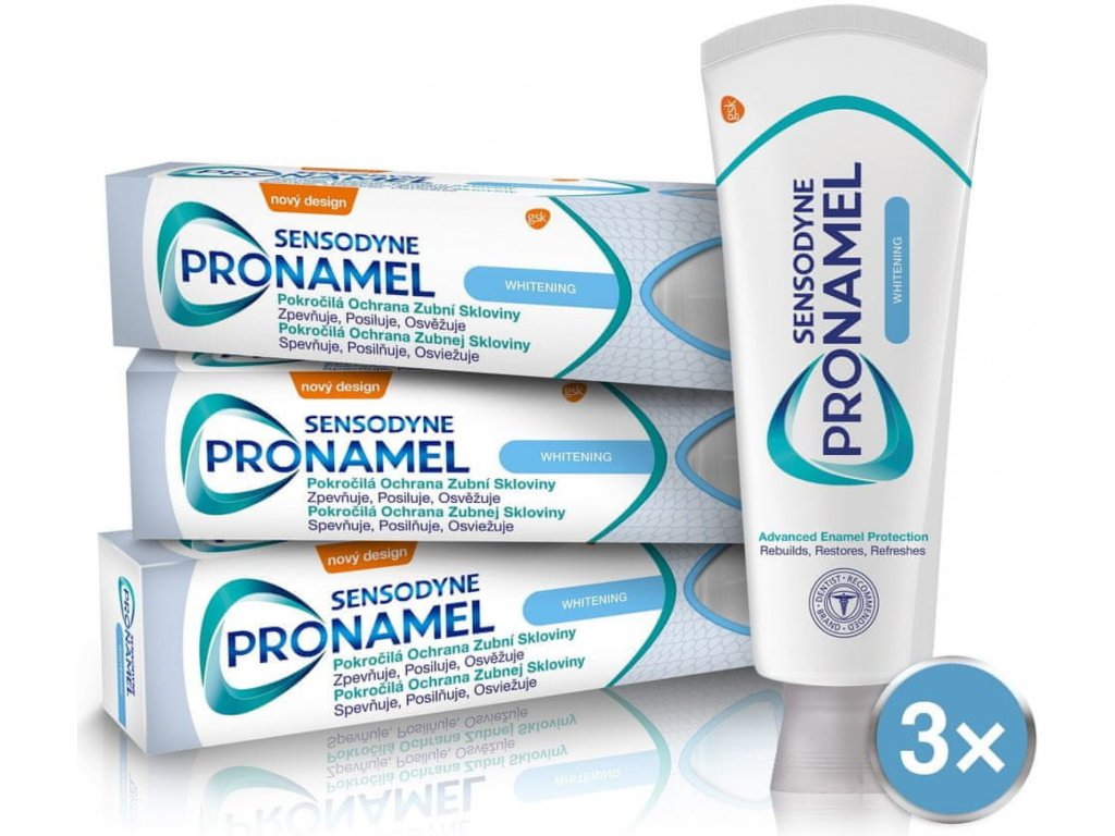 3x Sensodyne Pronamel Whitening je zobna pasta, ki ščiti sklenino pred vsakodnevnimi kislinami. Zobna pasta, posebej razvita za občutljive zobe.