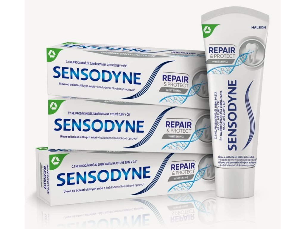 Sensodyne Repair & Protect Whitening je zobna pasta, ki lajša bolečine* in zagotavlja dolgotrajno zaščito za občutljive zobe.