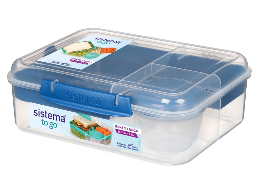 Sistema Divided To Go Bento škatla za malico z jogurtovo posodo in 2 pladnjema 1,65 l, modra