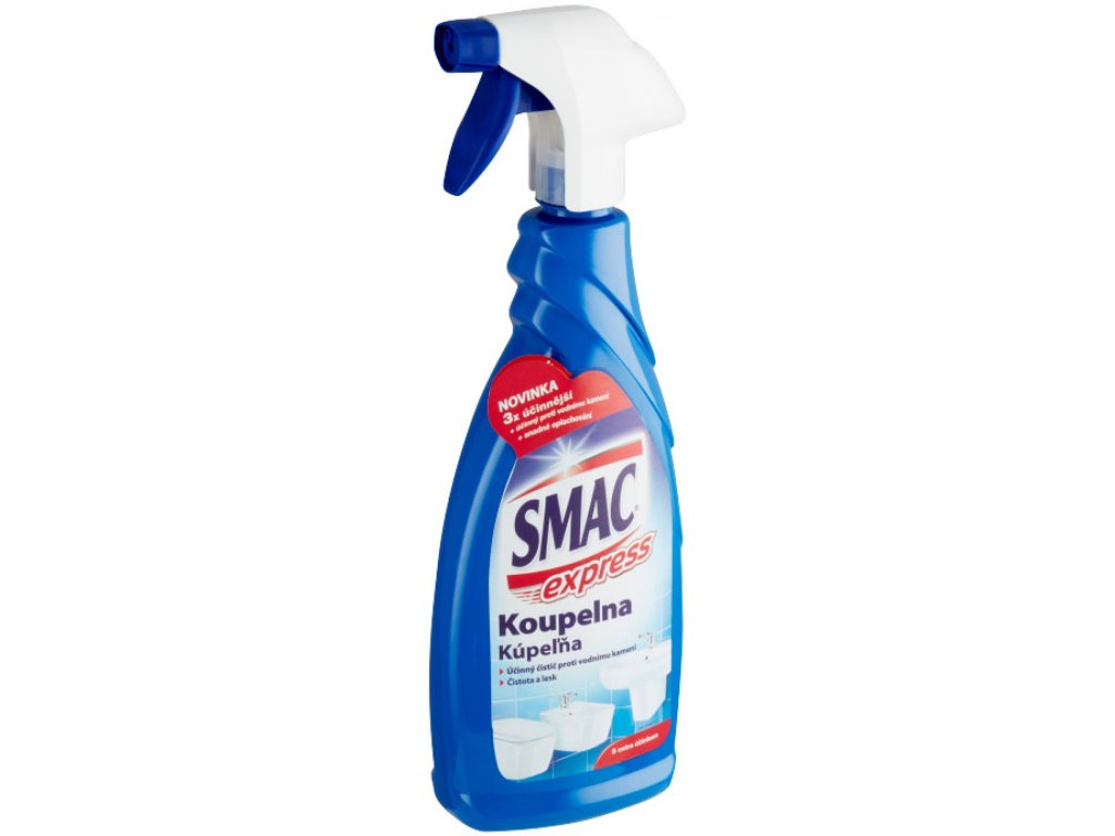 SMAC Bathroom – z lahkoto odstrani umazanijo in trdovraten vodni kamen z vseh kopalniških površin. Antibakterijska formula temeljito očisti in se enostavno spere. Površine ostanejo dolgo časa čiste in sijoče.