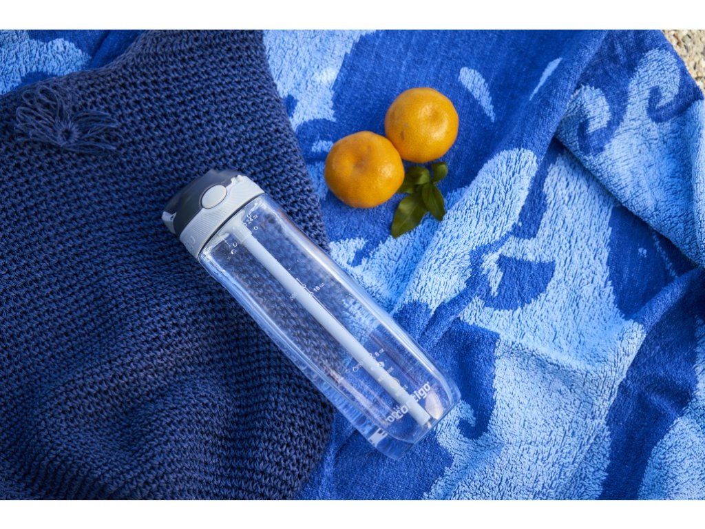 Steklenica je izdelana iz inovativnega materiala Tritan, ki vsebuje povprečno 50 % recikliranega materiala. Ta visokokakovostna plastika je popolnoma idealna za večkratno uporabo. Ni vam treba skrbeti za neprijetne vonjave, ki bi se lahko usedle v steklenici, ali za neprivlačne madeže od pijač. Vaša voda bo vedno svežega okusa, steklenica pa bo še vedno videti odlično. Upravljanje z eno roko prinaša maksimalno udobje ne le med športom, ampak tudi na poti. Z enostavnim pritiskom na gumb lahko obrnete izliv za pitje navzgor. Izliv s pokrovom je mogoče enostavno odstraniti za temeljito čiščenje. Tako pokrov kot telo steklenice sta primerna za pomivanje v pomivalnem stroju na zgornji rešetki. Zaklep gumba za pitje preprečuje nenamerno odpiranje med potovanjem. Primerno za večino držal za skodelice v avtomobilih in kolesih. Izdelek ni odporen proti razlitju v odprtem položaju, zato priporočamo, da ga nosite v pokončnem položaju.Dodatni parametri