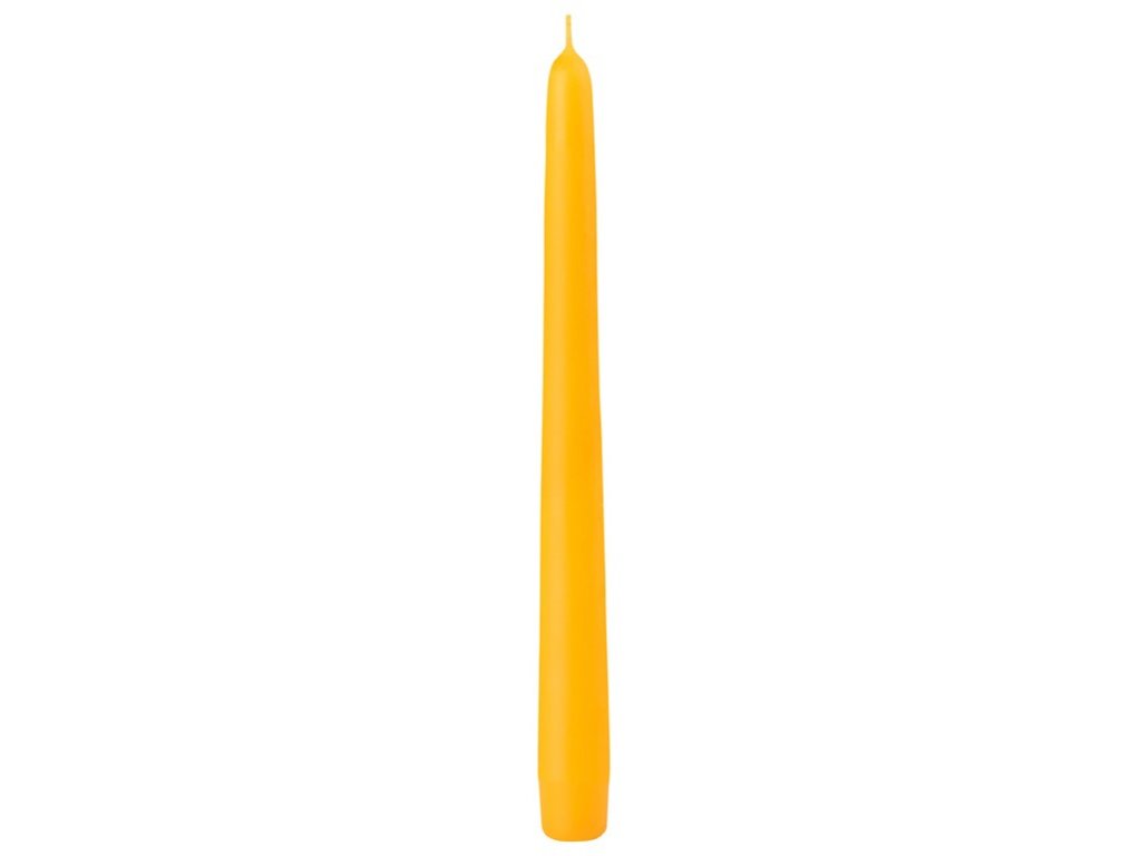 Stožčasta sveča v rumeni barvi, idealna za dodajanje toplega in veselega tona vaši notranjosti ali za praznične dogodke. Njene dimenzije so 22 x 240 mm.Dodatni parametri
