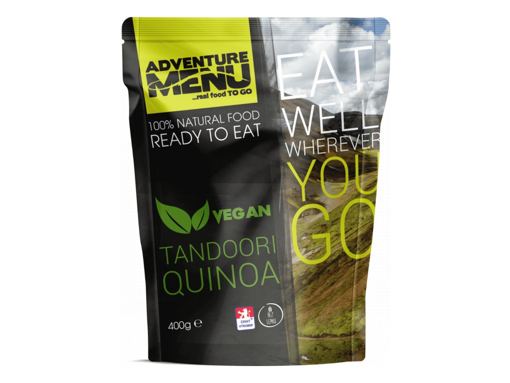 Tandoori kvinoja je eksotičen prigrizek v obliki že pripravljenega obroka s sladkim krompirjem, kvinojo, mešanico sočne zelenjave, začimb in čilija. Je idealna izbira za aktivne ljudi, ki želijo uživati v kakovostni hrani med dolgimi pohodi . Cenili jo bodo tudi ljubitelji kampiranja, ki se ne želijo prehranjevati le v restavracijah s hitro prehrano. Pripravite jo zelo hitro in enostavno po navodilih. Tandoori kvinoja bo všeč ne le veganom, temveč tudi vsem ljubiteljem mesa. Pokazala jim bo novo dimenzijo okusov, ki je še niso poznali.