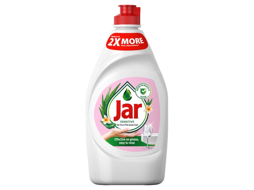 Tekoči detergent za pomivanje posode Jar Sensitive ima čistilne učinke, na katere se lahko vedno zanesete. Ena sama kapljica zadostuje za res dolgo časa, zato na koncu prihranite. Naj gre za krožnike in kozarce ali lonce in ponve – ne glede na izziv. Jar Sensitive je neomajno učinkovit do maščobe in nežno do rok. Učinkovito odstrani maščobo in ostanke hrane z vse posode, zaradi česar je hitro in enostavno bleščeče čista in popolnoma razmaščena. Njegova gosta formula ustvari bogato peno, ki bo zvila vsako maščobo in jo učinkovito odstranila z vseh mest.