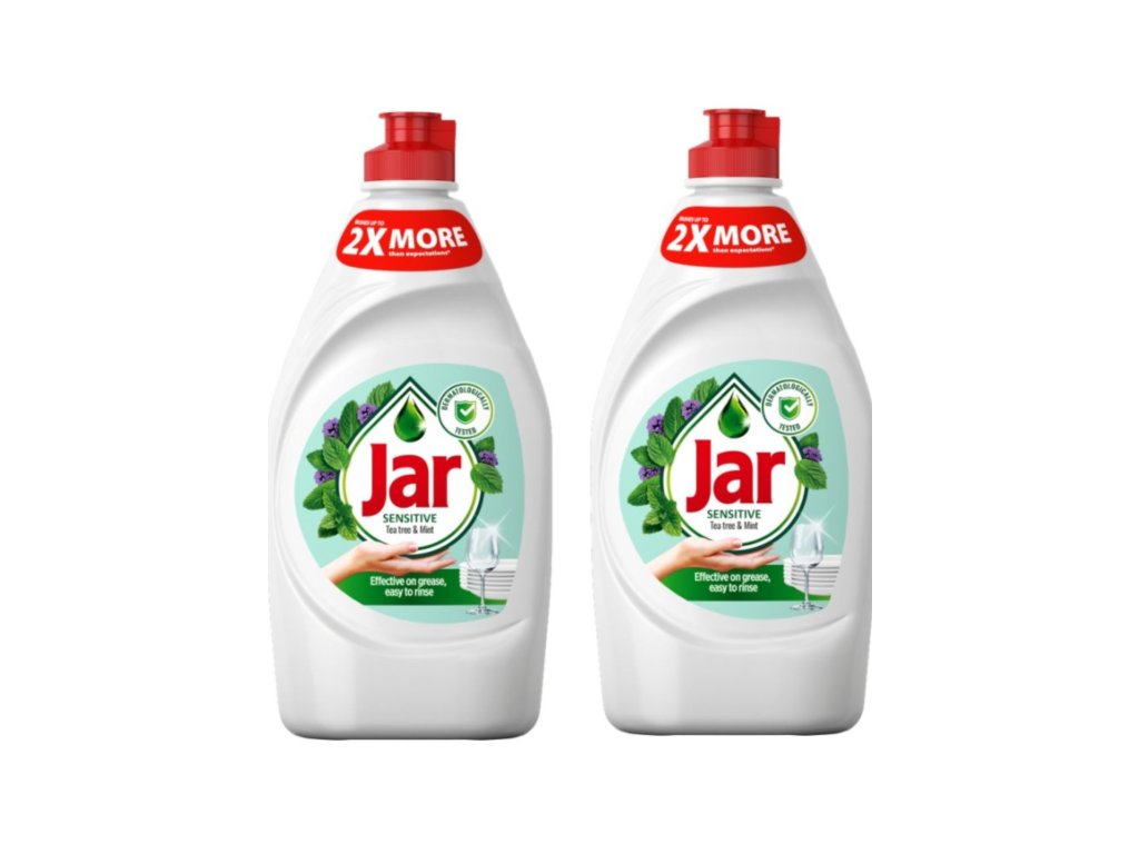Detergent za pomivanje posode Jar Sensitive Teatree & Mint ima čistilno moč, ki ji lahko vedno zaupate. Ena kapljica zadostuje za dolgo časa, zato na koncu prihranite denar. Krožniki in kozarci ali lonci in ponve – ni pomembno, kako umazana je vaša posoda. Preizkusite tudi kapsule za avtomatski pomivalni stroj Jar All in One, da bo vaša posoda in pomivalni stroj ostala bleščeča. Zasnovano in preizkušeno za uporabo v vseh vodilnih pomivalnih strojih.