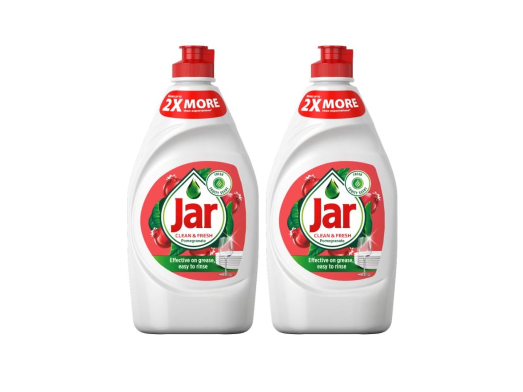 Tekočina za pomivanje posode Jar z granatnim jabolkom in rdečo pomarančo ima čistilno moč, ki ji lahko vedno zaupate. Naj gre za krožnike in kozarce ali lonce in ponve – učinkovita formula Jar zlahka odstrani maščobo, ne glede na to, kako umazana je vaša posoda. Vsaka kapljica očisti veliko mastne posode, zato vam pomaga prihraniti denar. Na voljo je v različnih količinah in v različnih vonjih, kot so limona, pomaranča, jabolko in granatno jabolko. Preizkusite tudi kapsule za avtomatski pomivalni stroj Jar All in One, da bo vaša posoda in pomivalni stroj ostala bleščeča. Zasnovano in preizkušeno za uporabo v vseh vodilnih pomivalnih strojih.