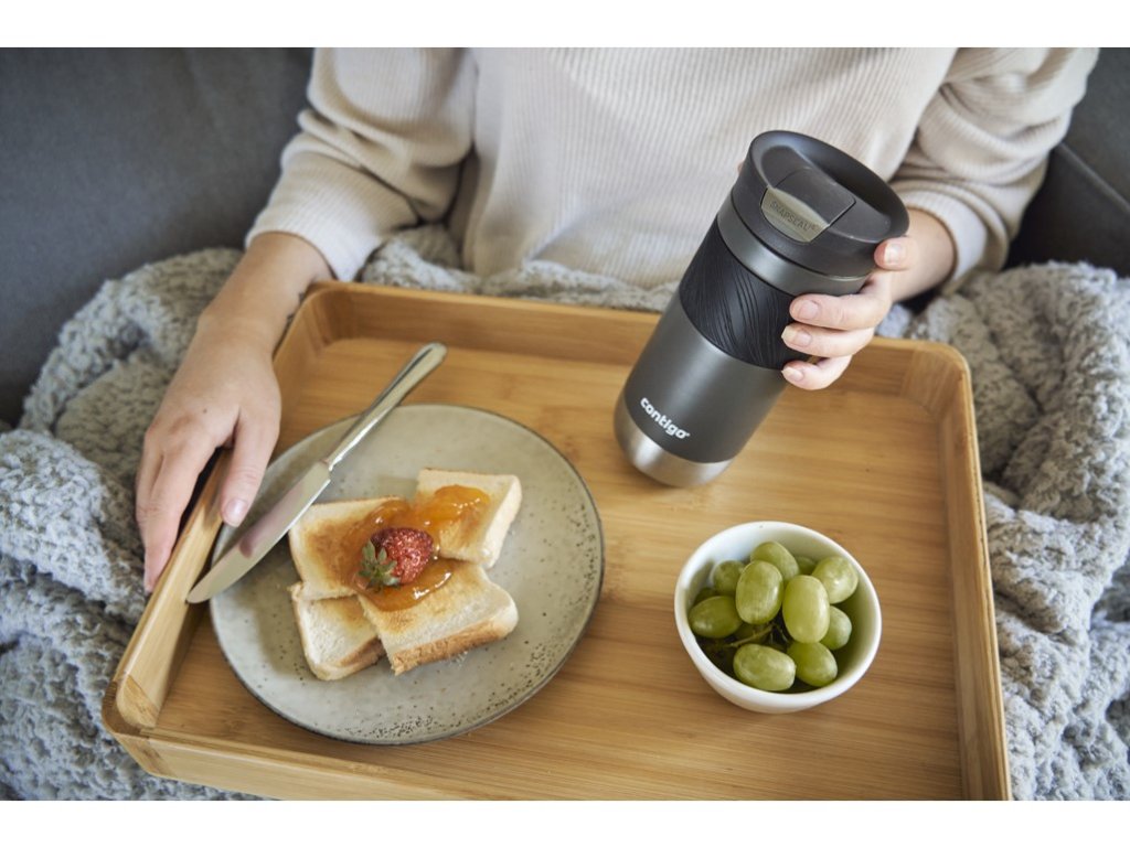Termovka Contigo SNAPSEAL je zasnovana za enostavno pitje z eno roko. Za pitje preprosto odprite pokrov (ni ga treba odvijati ali odstranjevati) in ga po pitju zaprite, da se pokrov zatesni. Zahvaljujoč vakuumski izolaciji THERMALOCK ohrani vaš čaj ali kavo vročo do 6 ur in hladno do 12 ur. Izdelana je iz dvostenskega vakuumsko izoliranega nerjavečega jekla 18/8. Termovka je zasnovana tako, da se prilega večini držal za skodelice v avtomobilu. Pokrov je primeren za pomivanje v pomivalnem stroju na zgornji rešetki, ohišje pa je primerno samo za ročno pranje. Izdelek ni odporen proti razlitju, ko je odprt, zato priporočamo, da ga nosite pokonci.Dodatni parametri