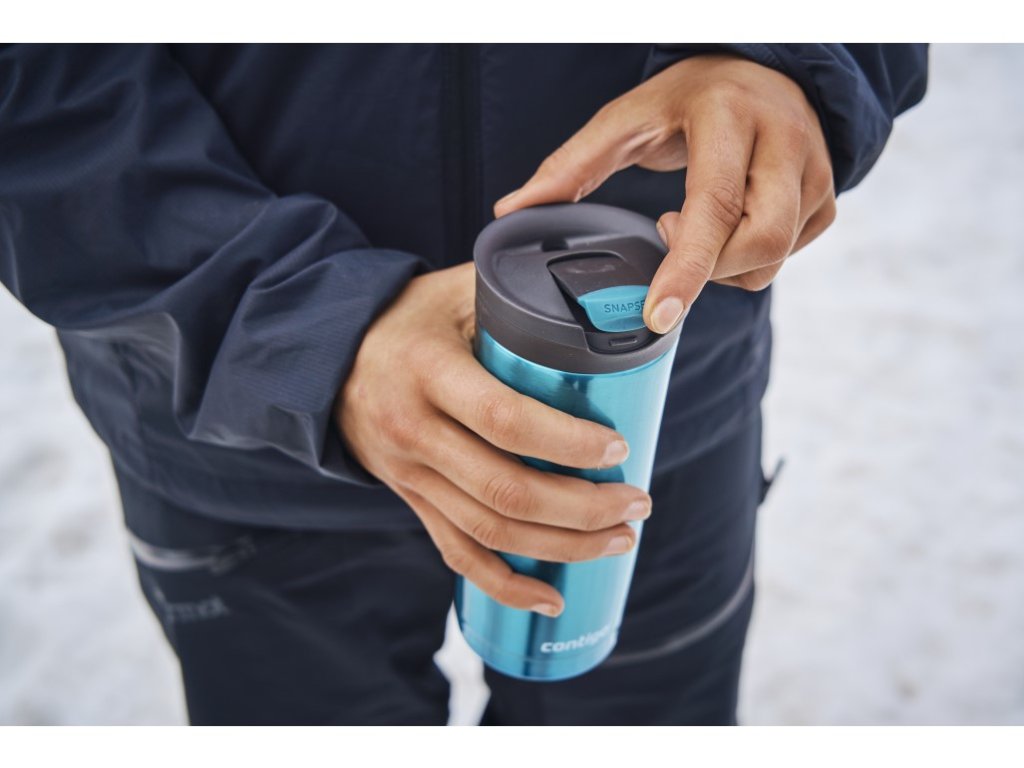 Termovka Contigo SNAPSEAL je zasnovana za enostavno pitje z eno roko. Za pitje preprosto odprite pokrov (ni ga treba odvijati ali odstranjevati), nato pa ga zaprite nazaj, da se pokrov zatesni. Dvostenska vakuumska izolacija THERMALOCK ohranja pijačo toplo do 7 ur in hladno do 12 ur. Izdelana je iz dvostenskega, vakuumsko izoliranega nerjavečega jekla 18/8. Pokrov je primeren za pomivanje v pomivalnem stroju na zgornji rešetki, ohišje pa je primerno samo za ročno pranje. Izdelek ni odporen proti razlitju, ko je odprt, zato priporočamo, da ga nosite pokonci.Dodatni parametri