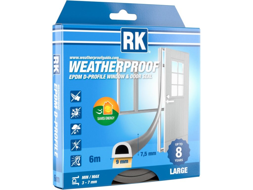 Samolepilno gumijasto tesnilo iz visokokakovostnega EPDM zagotavlja zanesljivo zaščito pred mrazom, prepihom, vlago, prahom in hrupom. Prenese temperature od -40 °C do +60 °C in pomaga zmanjšati izgube energije. Tesnilo je fleksibilno, vodoodporno, pralno in enostavno za namestitev na večino vrst oken in vrat. Za pravilno namestitev priporočamo čiščenje površine z acetonom RK ali podobnim izdelkom brez olja in ne nameščanje pri temperaturah pod +5 °C. Značilnosti: Varčevanje z energijo in zaščita pred prepihom Primerno za reže 3–7 mm Samolepilno za enostavno namestitev Odporno na vremenske vplive, življenjska doba do 8 letDodatni parametri