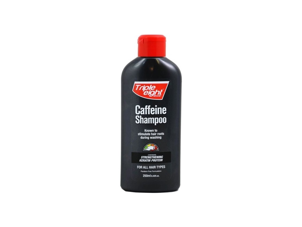 Šampon znamke Triple Eight vsebuje kofein, za katerega je znano, da med umivanjem spodbuja lasne korenine . Poleg tega spodbuja rast las v kombinaciji s keratinom - eno ključnih vlaknastih strukturnih beljakovin in ključno strukturno komponento las, znano po tem, da ščiti in krepi lase.