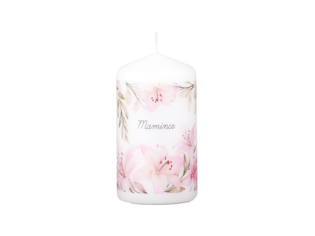 Valjasta sveča Mama - cvet lilije, 50x90 mm