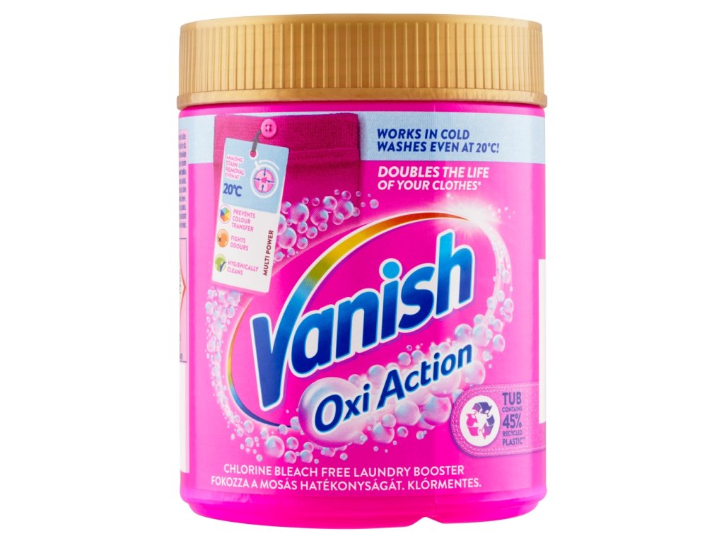 Prašek za odstranjevanje madežev Vanish Oxi Action odstrani madeže že po prvem pranju. Učinkovit je pri odstranjevanju širokega spektra madežev. Za največjo hitrost in učinkovitost tkanino predhodno obdelajte ali namočite.