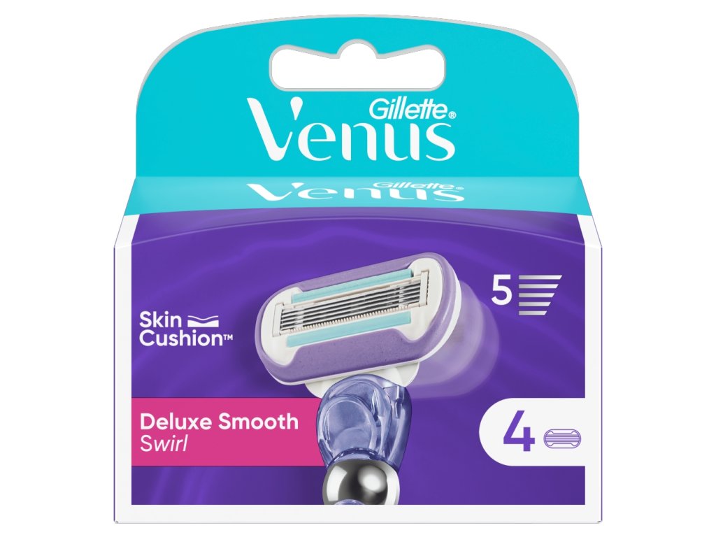 - Brivne glave Venus Swirl vsebujejo vlažilni serum MoistureGlide – za neverjetno drsenje britvice po koži
