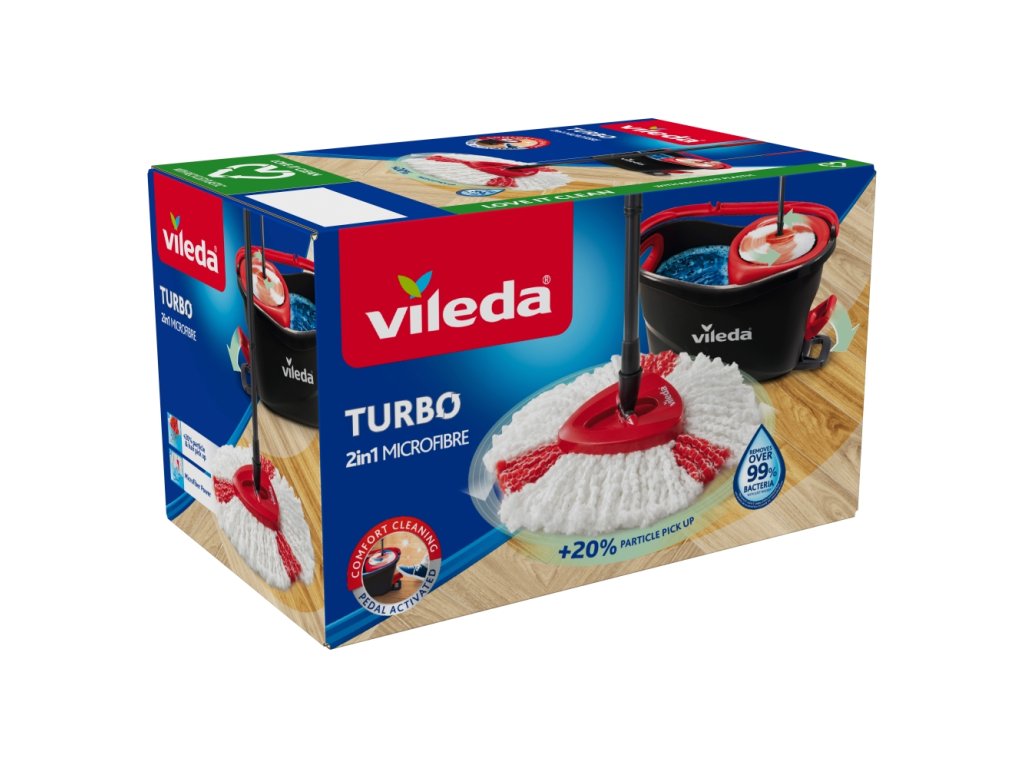 Vileda Turbo mop z ožemalnikom in pedalom je idealen pripomoček za čiščenje vseh tal. Njegov ožemalnik omogoča lažje in hitrejše čiščenje tal. Celoten komplet vsebuje mop z resicami in vedro z ožemalnikom in pedalom. Primeren je za vse trde talne površine, vključno z lesom in laminatom. Po izpiranju mopa ni treba ročno ožemati – 360-stopinjski sistem ožemanja opravi težko delo namesto vas! Ne le, da je enostaven za uporabo, ampak tudi temeljito očisti tla. 2v1