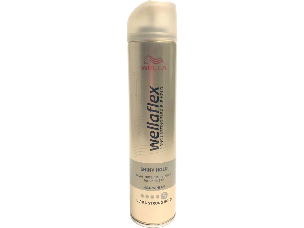 Lak za lase Wellaflex Shiny Hold - Ultra močna fiksacija. Lak za lase Wellaflex Shiny Hold za ultra močno fiksacijo z novo inovativno tehnologijo Wella vam omogoča, da dosežete popolnoma sijočo pričesko z boljšo in prožnejšo fiksacijo, ki traja do 24 ur. S sestavinami, ki odbijajo svetlobo, za vidno bolj sijoče lase že po prvi uporabi.