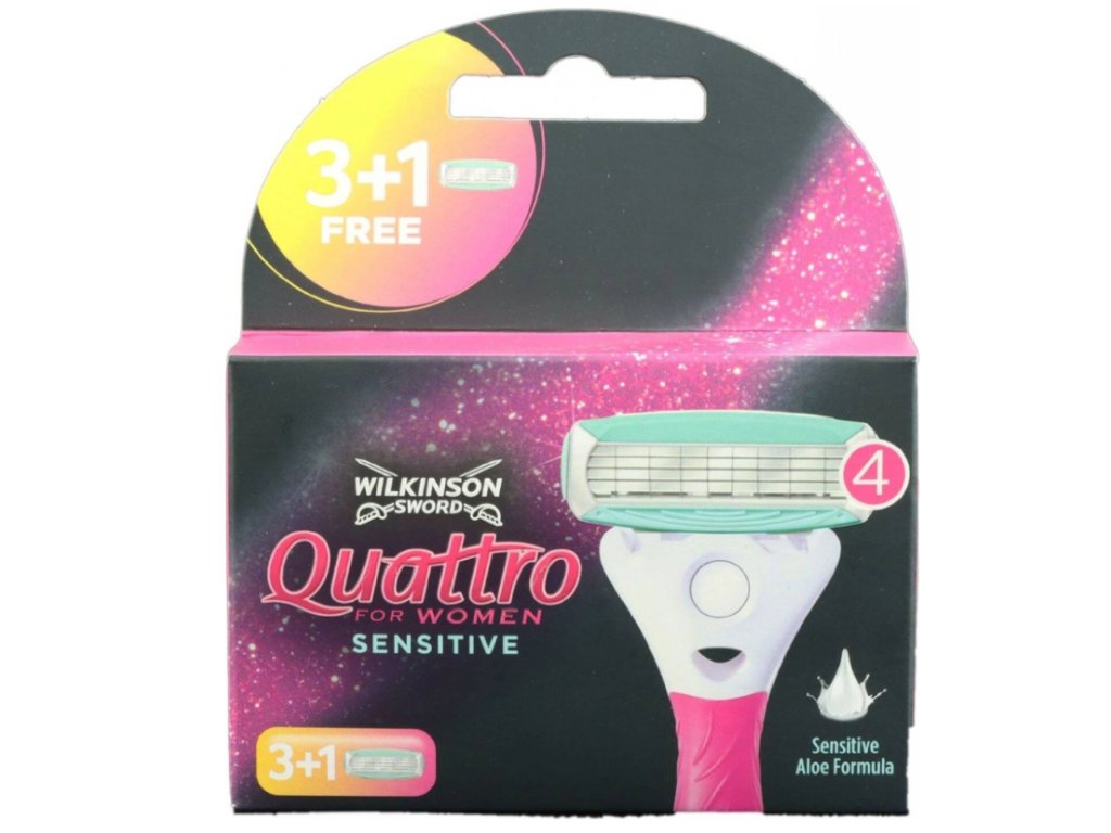 Paket vsebuje 4 brivne glave , ki so namenjene kot zamenjava za združljive ročaje Wilkinson Sword Quattro for Women.