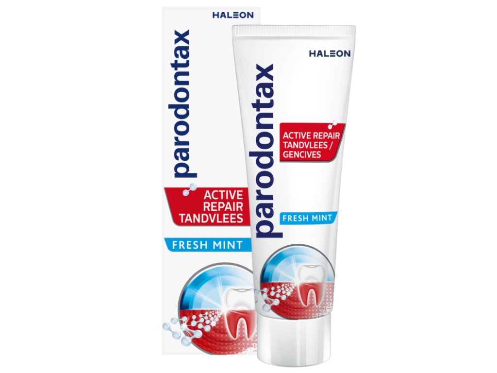 Zobna pasta Parodontax Active Gum Restoration je zasnovana za vsakodnevno nego dlesni in zob. Posebna formula pomaga ciljati na glavni vzrok težav z dlesnimi – zobne obloge – in prispeva k njihovi regeneraciji in močnejšemu oprijemu na zobe. Z redno uporabo pomaga zmanjšati krvavitev dlesni, okrepiti zobe in ohraniti dolgotrajen občutek svežine.