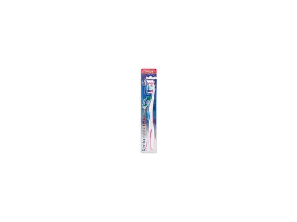 Trda zobna ščetka z ergonomskim čistilom za glavo in jezik.